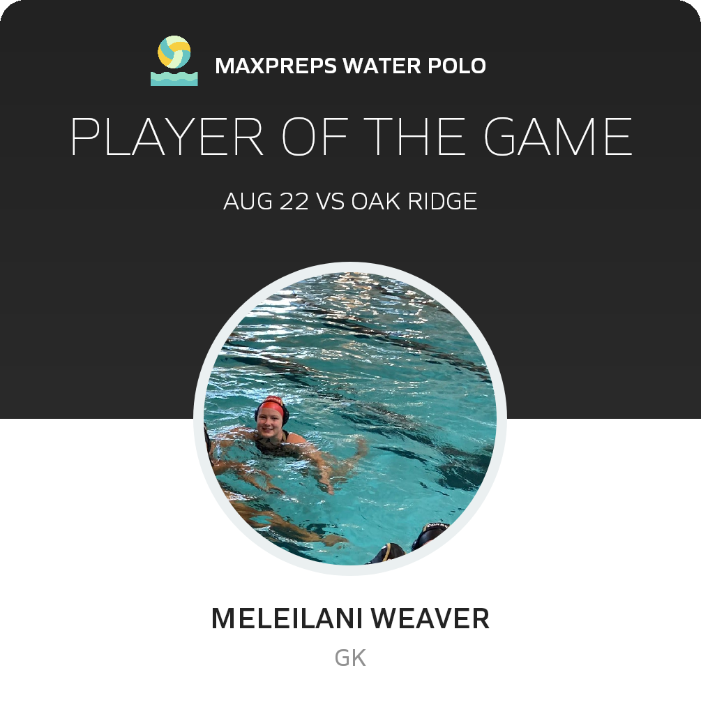 Congratulations to #1 Meleilani Weaver for being selected the Conroe Girls Water Polo Player of the Game.