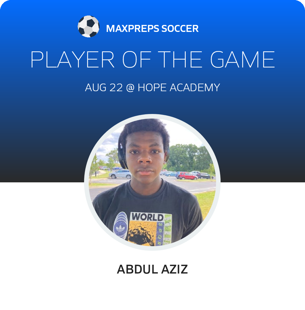 Congratulations to #3 Zeke Shelton for being selected the HOPE Academy Soccer Player of the Match.