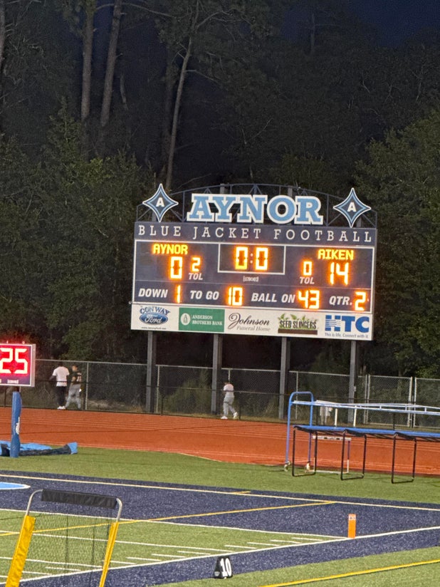 August 22, 2025: Aynor, SC 29511 The Aiken Fighting Green Hornets felled the host Aynor Blue Jackets football team by a score of 27-7 in Friday's non-league challenge.