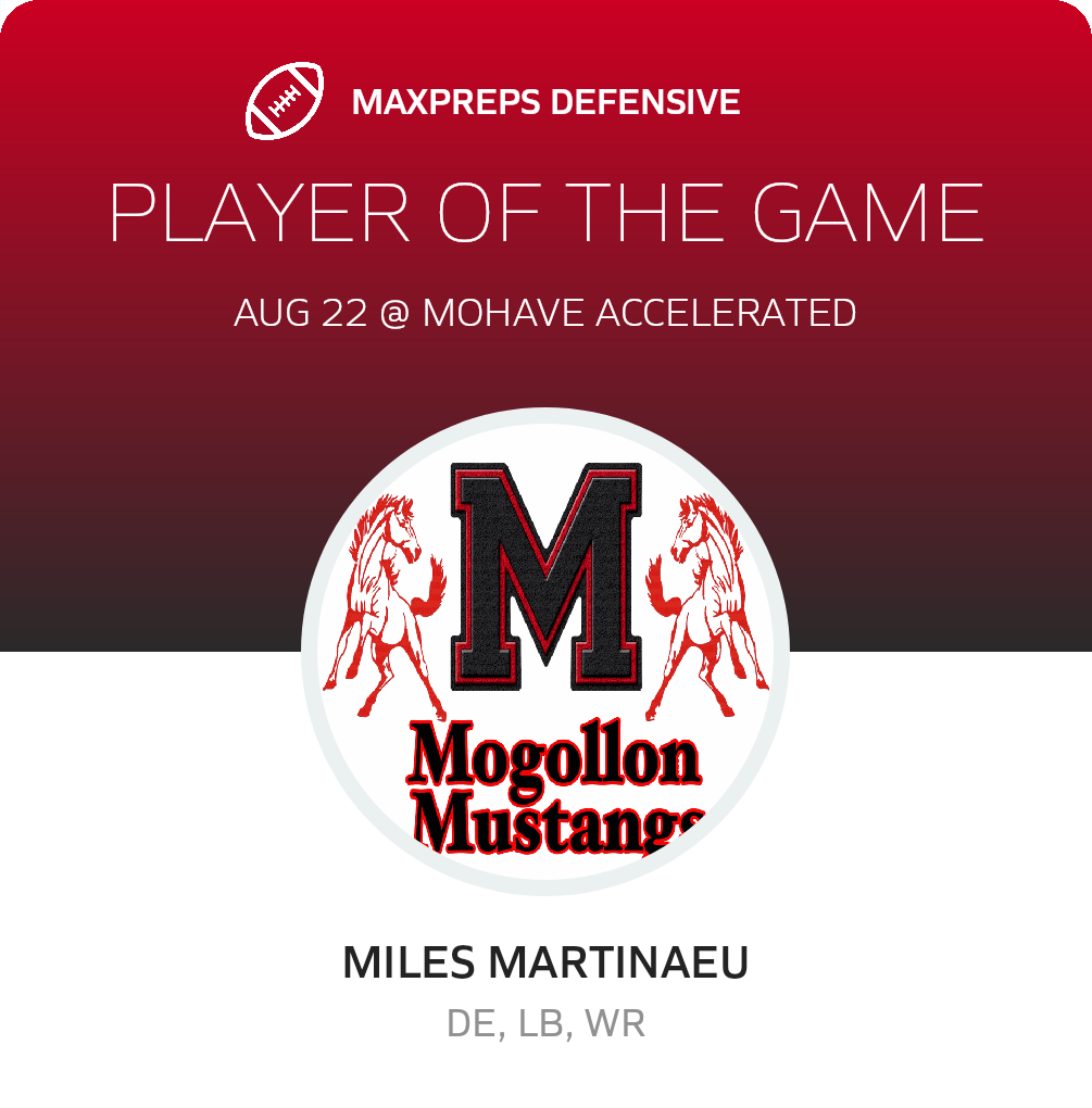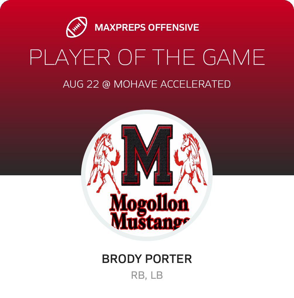 The Mustangs now sport a 1-0 record. They take the field next when they host Cicero Prep Academy for a non-league test on Friday, August 29. Mogollon will meet a Centurions squad coming off a 36-0 non-league win over Red Rock (Sedona, AZ). The Centurions record now stands at 1-0.