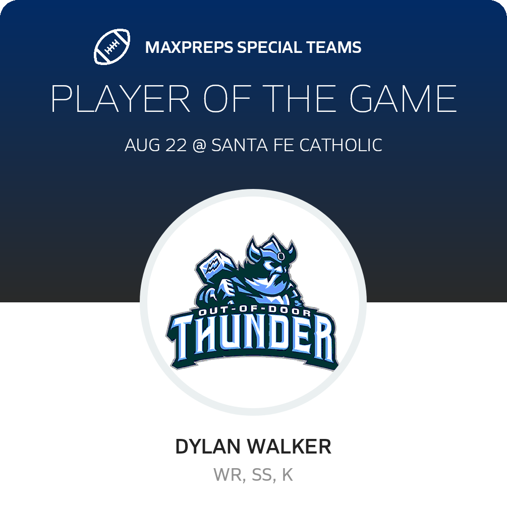 Coming up next, the Thunder confront the Cambridge Christian Lancers (Tampa, FL) in a Sunshine State - Freelance match, on Friday, August 29. Out-of-Door Academy will attempt to upgrade on its 1-1 season record. The Lancers come into the match with a 0-1 record after their 32-10 non-league loss to Keswick Christian (St. Petersburg, FL).