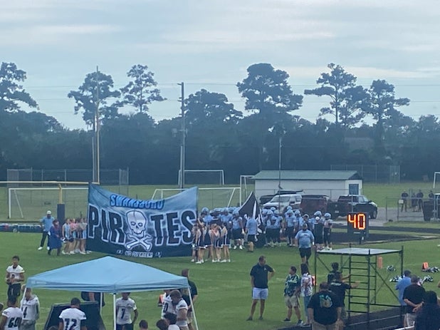 August 22, 2025: Swansboro, NC 28584 The South Columbus Stallions got by the host Swansboro Pirates football team by a score of 27-21 in Friday's non-league challenge.