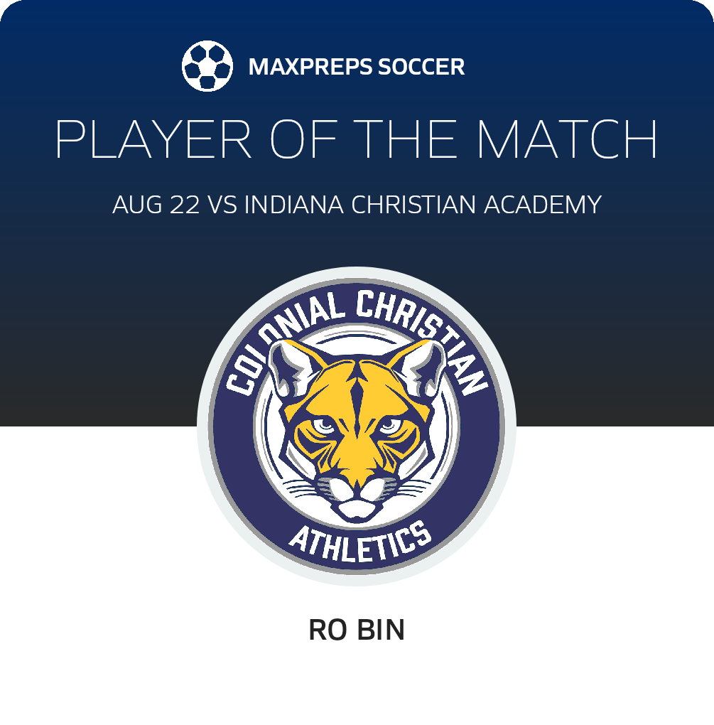 Congratulations to #3 Ro Bin for being selected the Colonial Christian Soccer Player of the Match.