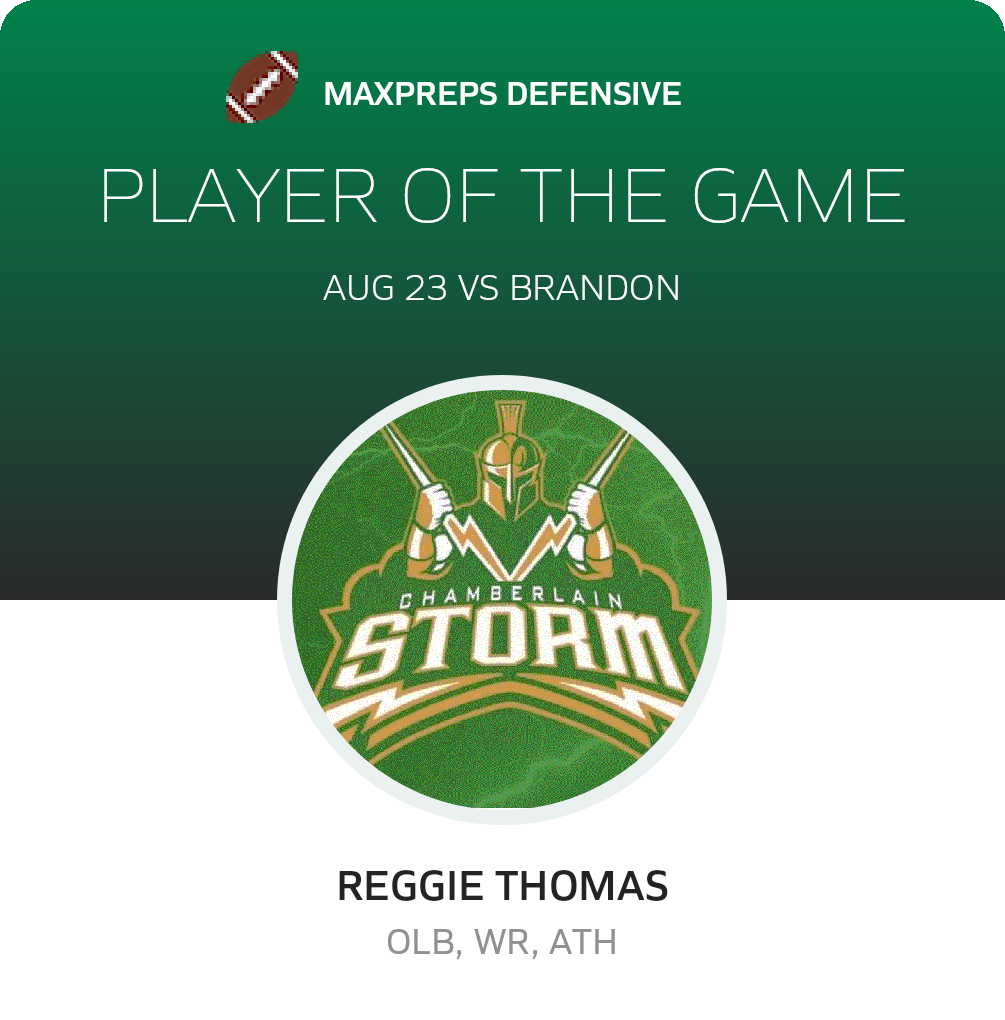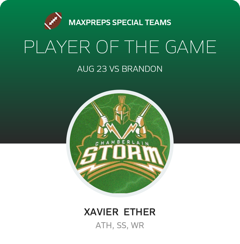 The Storm now sport a 1-0 record. They take the field next when they travel to Freedom for a non-league outing on Friday, August 30. Chamberlain will clash with a Patriots squad coming off a 38-0 non-league loss to Wharton (Tampa, FL). The Patriots record now stands at 0-1.