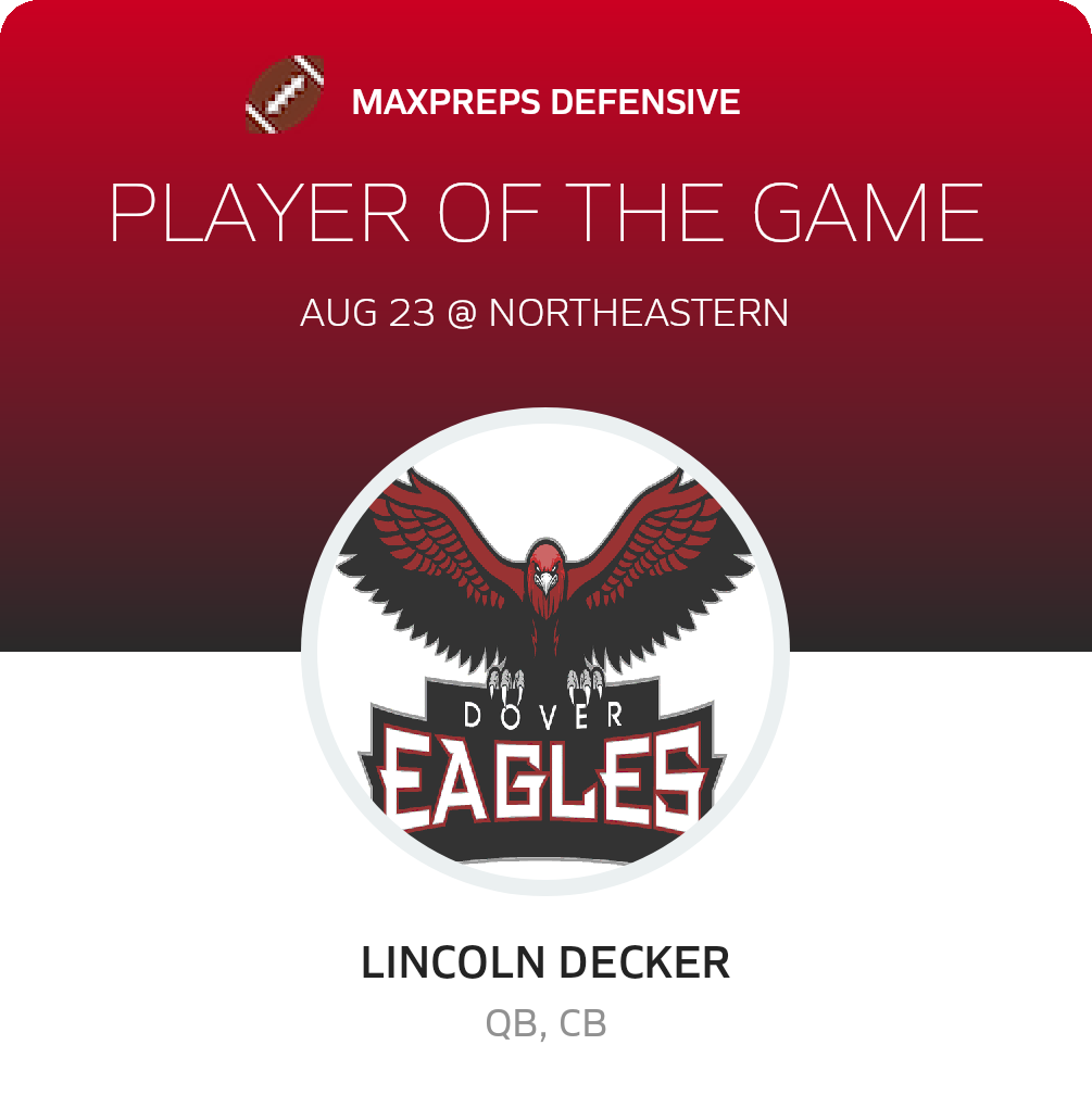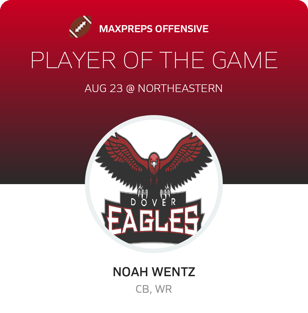 With the win, Dover advances its record to 1-0 on the season. The Eagles travel to South Western (Hanover, PA) to encounter the Mustangs in a non-league bout on Friday, August 30. The Mustangs go into the bout with a record of 1-0. South Western won 36-6 in their recent non-league bout against York Suburban (York, PA)