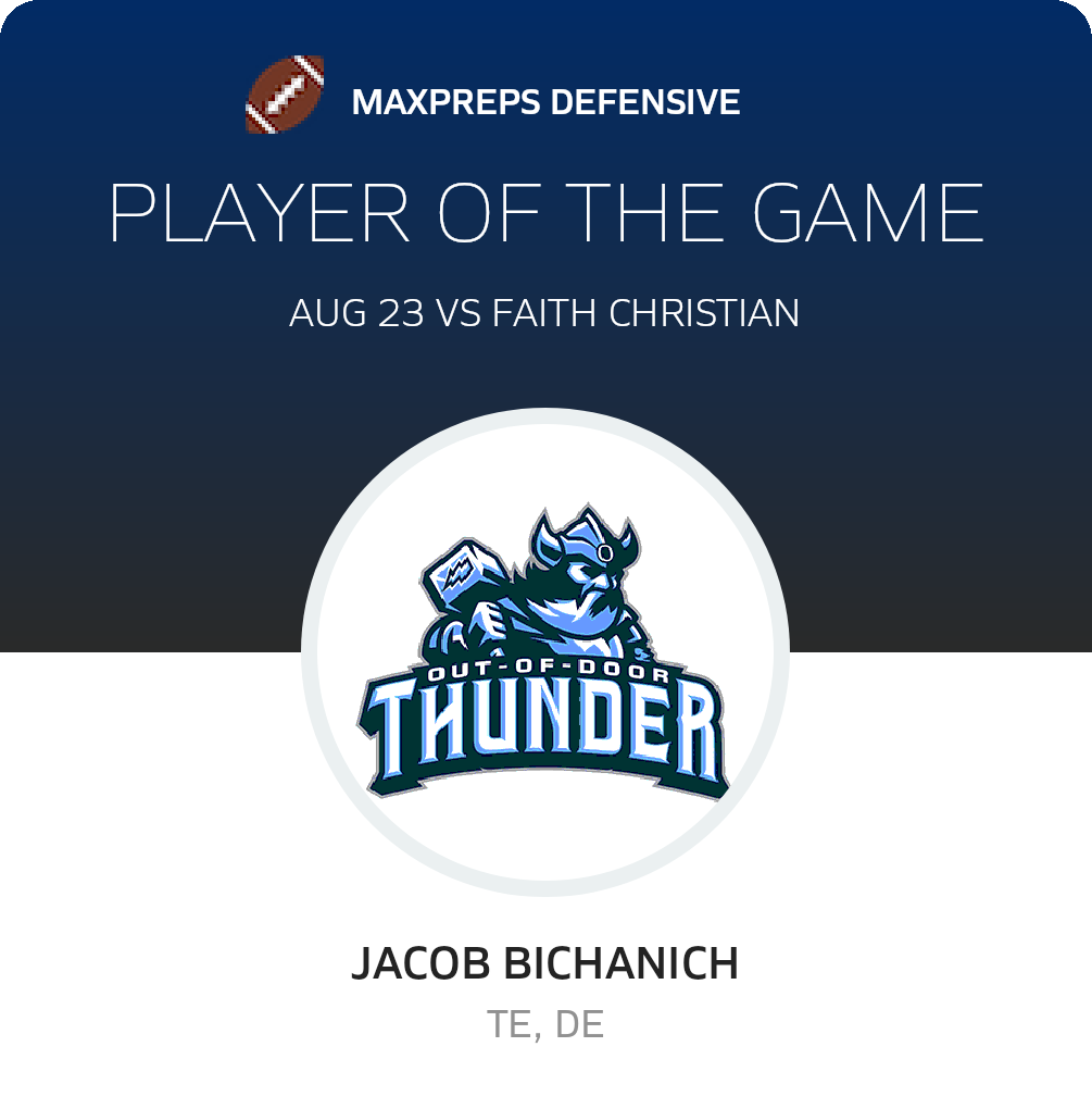 In their next game, the Thunder face the Central Florida Christian Academy Eagles (Ocoee, FL) in a non-league challenge, on Friday, August 30. Out-of-Door Academy will attempt to improve on its 2-0 season record.