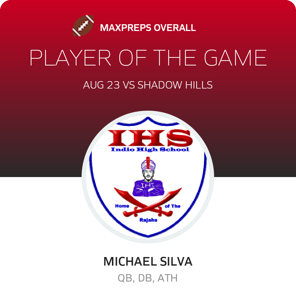 August 23, 2024: Indio, CA 92201 The Shadow Hills Knights football squad scored 33 points and limited the host Indio Rajahs to 8 in the Knights non-league triumph on Friday.