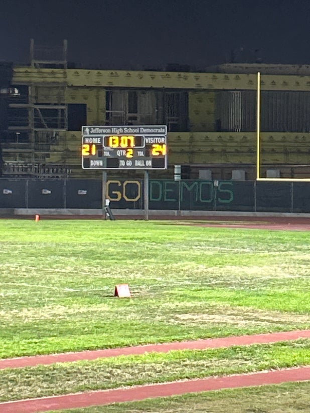 August 23, 2024: Los Angeles, CA 90011 The Jefferson Democrats got by the visiting Reseda Regents football team by a score of 35-30 in Friday's non-league challenge.