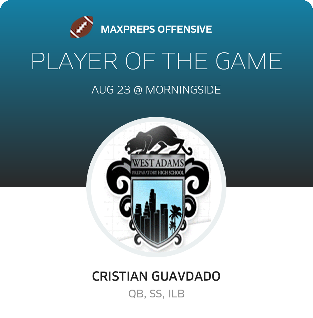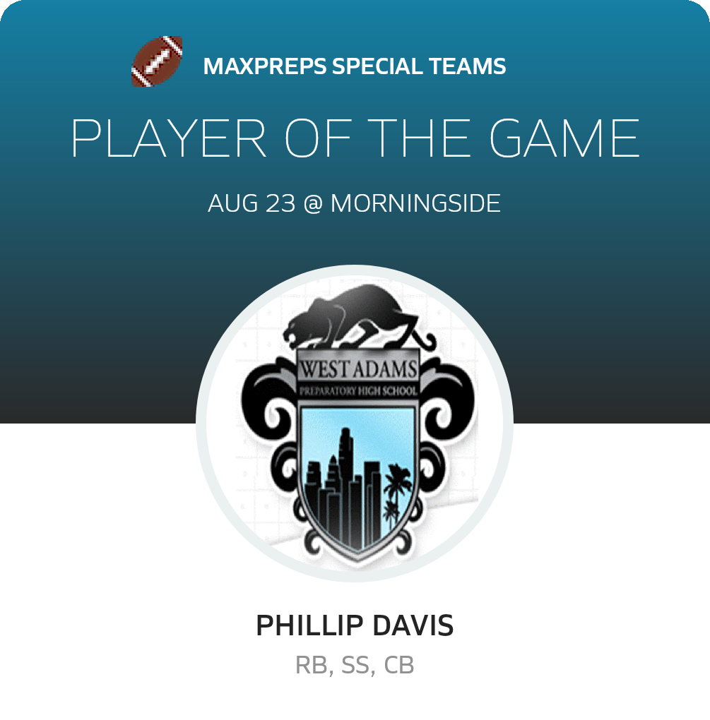 With the win, West Adams improves its record to 1-0 on the season. The Panthers travel to Jefferson (Los Angeles, CA) to play the Democrats in a non-league battle on Thursday, August 29. The Democrats go into the battle with a record of 1-0. Jefferson won 35-30 in their recent non-league battle against Reseda (Reseda, CA)