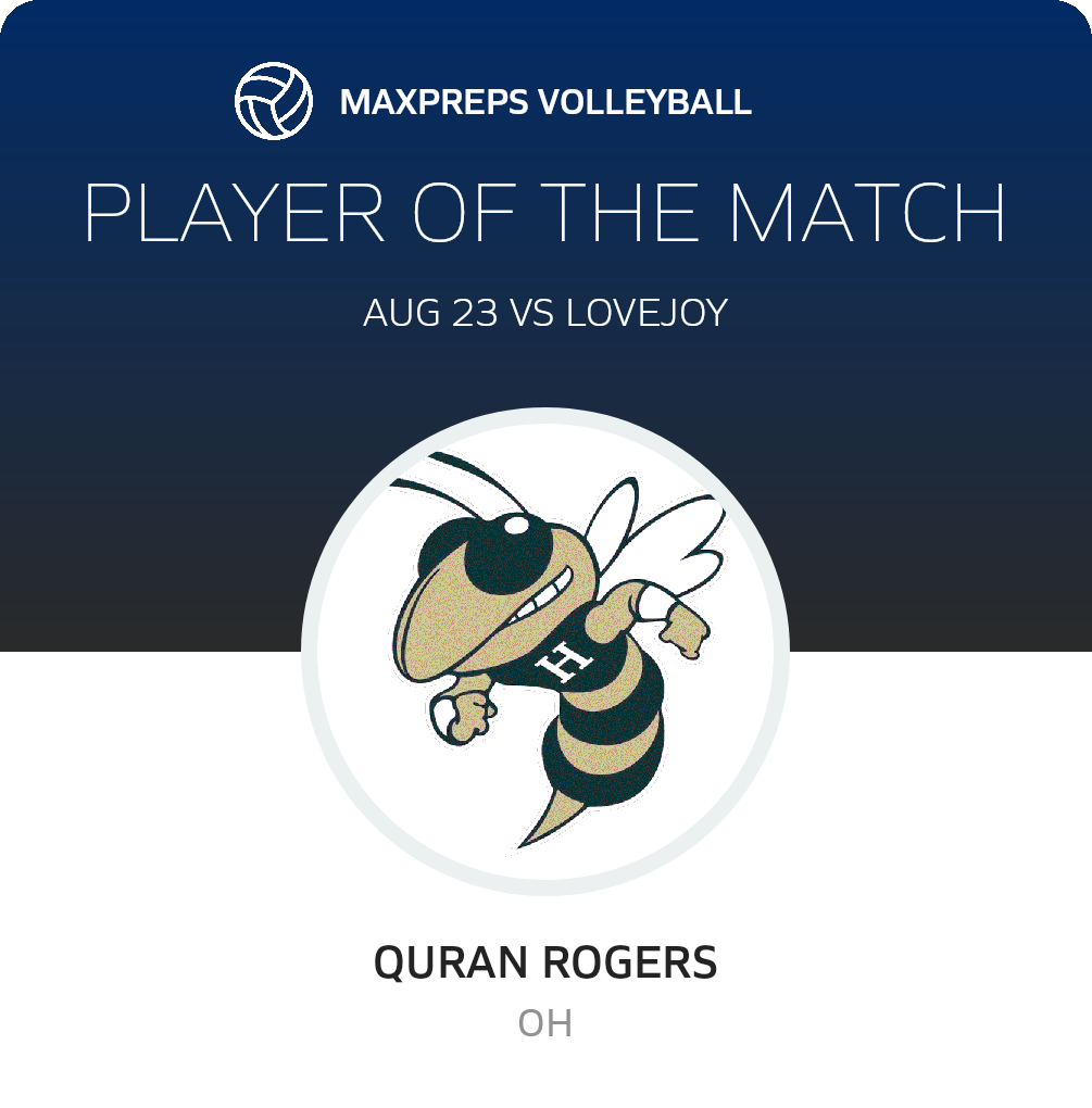 Congratulations to #10 Quran Rogers for being selected the Hapeville Charter Volleyball Player of the Match.