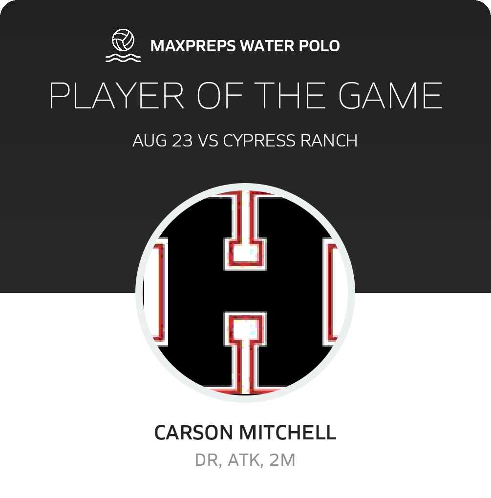 Congratulations to #14 Carson Mitchell for being selected the Rockwall-Heath Water Polo Player of the Game.