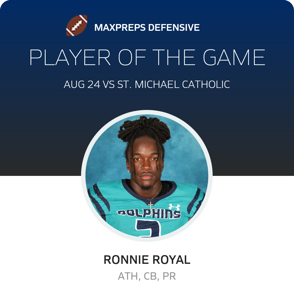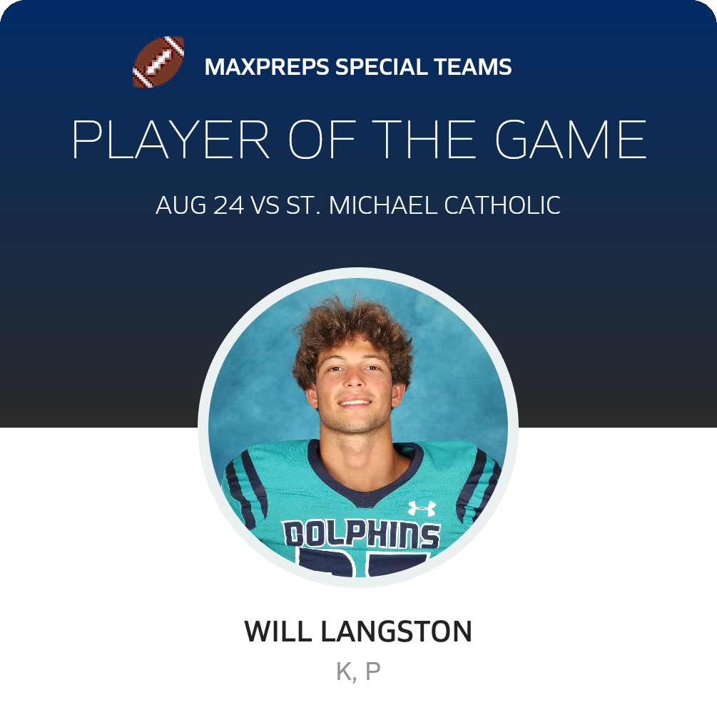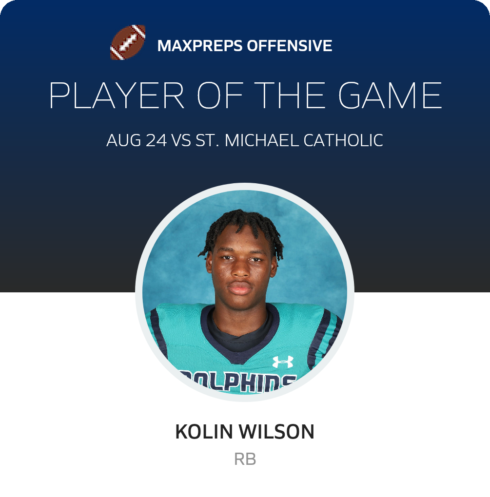 August 24, 2023: Gulf Shores, AL 36542 The Gulf Shores Dolphins thwarted the visiting St. Michael Catholic Cardinals football team by a count of 41-20 in Thursday's non-league outing.