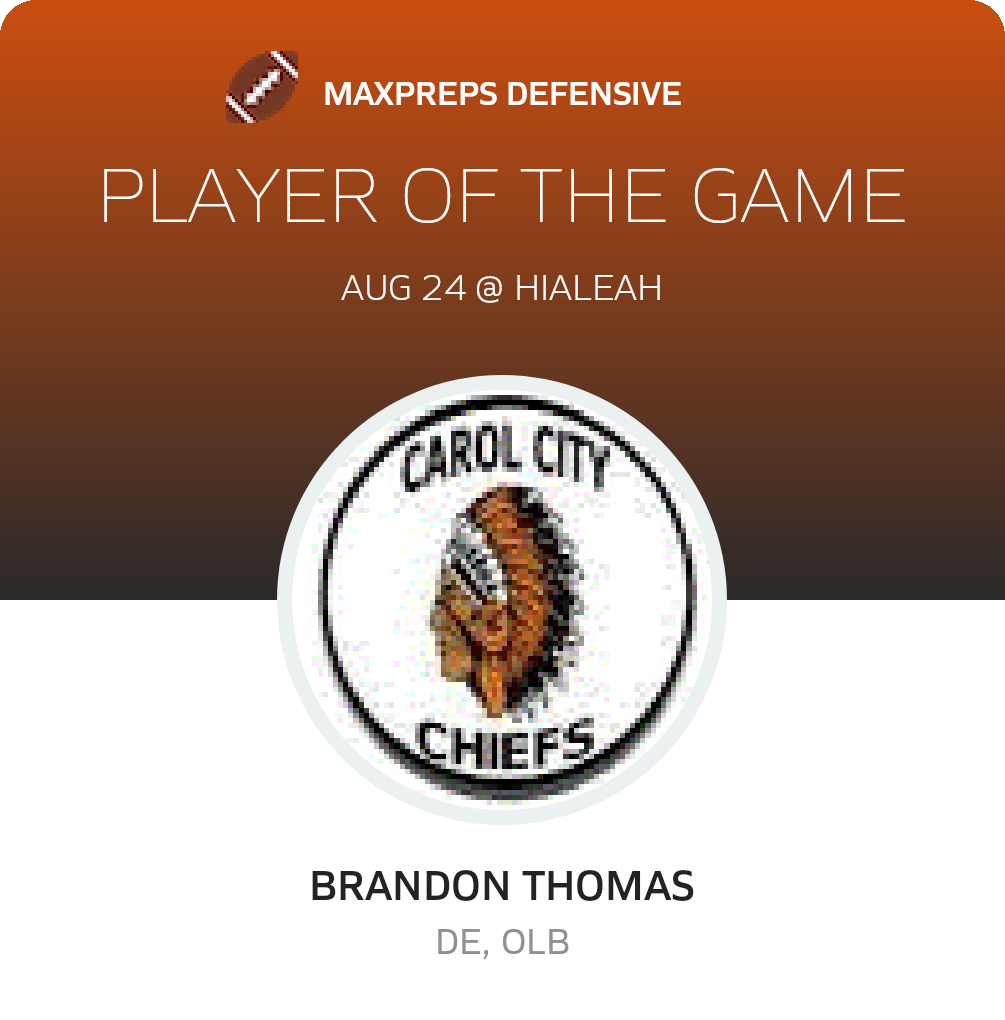 The Chiefs now sport a 2-0 record. They take the field next when they travel to Norland for a non-league outing on Friday, August 30. Carol City will clash with a Vikings squad coming off a 27-0 non-league win over Miramar (Miramar, FL). The Vikings record now stands at 1-0.