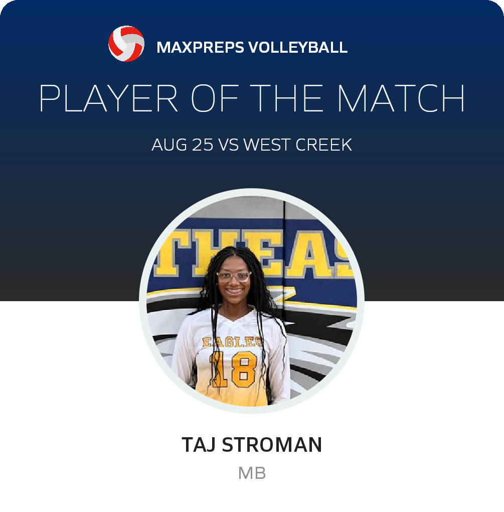 Congratulations to #18 Taj Stroman for being selected the Northeast Freshman Volleyball Player of the Match.