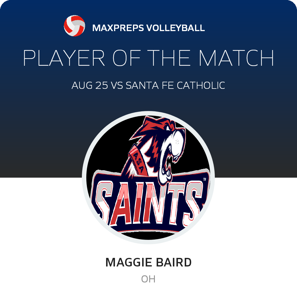 August 25, 2022: Winter Haven, FL 33880 The All Saints' Academy Saints volleyball team scored 2 points and limited the visiting Santa Fe Catholic Hawks to 1 in the Saints non-league victory on Thursday.