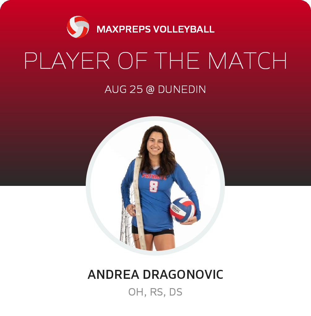 August 25, 2022: Dunedin, FL 34698 The Pinellas Park Patriots topped the host Dunedin Falcons volleyball team by a score of 2-0 in Thursday's non-league test.