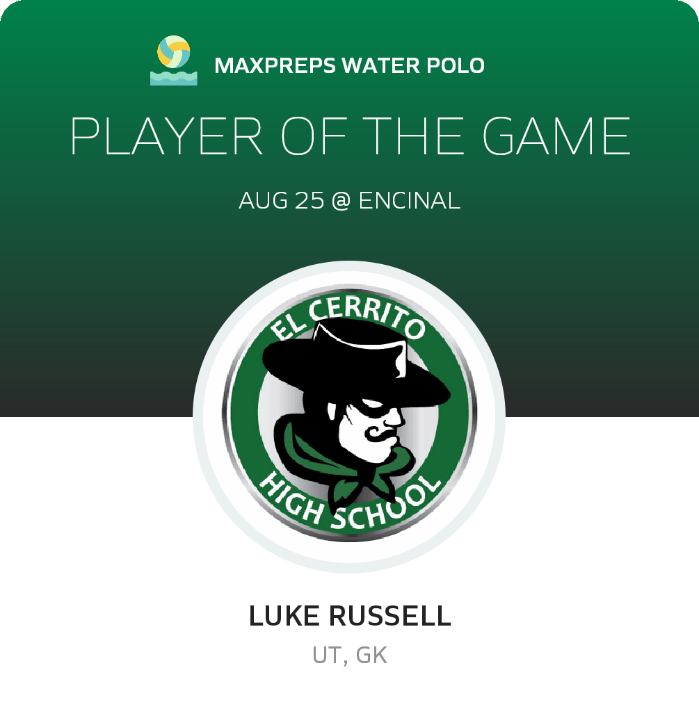 Congratulations to #11 Luke Russell for being selected the El Cerrito Water Polo Player of the Game.