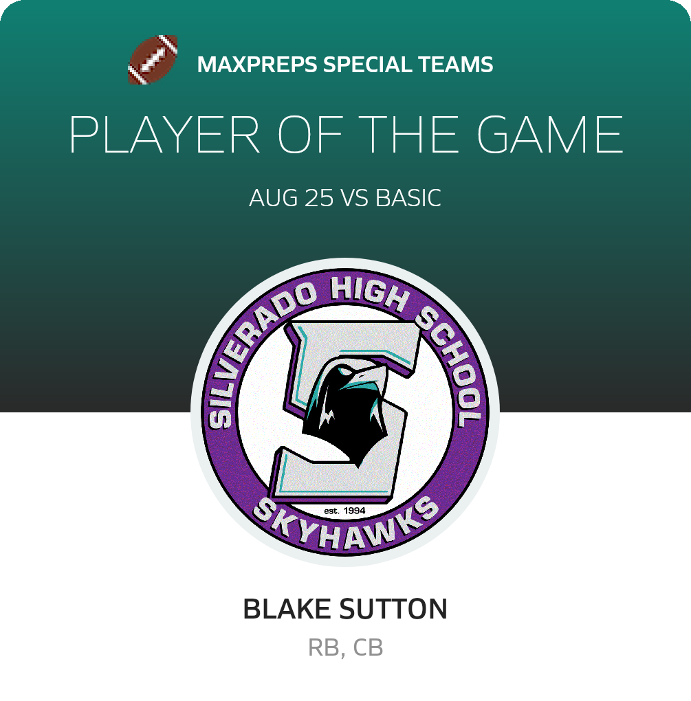 With the win, Silverado upgrades its record to 2-0 on the season. The Skyhawks travel to Foothill (Henderson, NV) to confront the Falcons in a non-league outing on Friday, September 1. The Falcons go into the outing with a record of 1-1. Foothill won 45-7 in their recent non-league outing against Moapa Valley (Overton, NV)