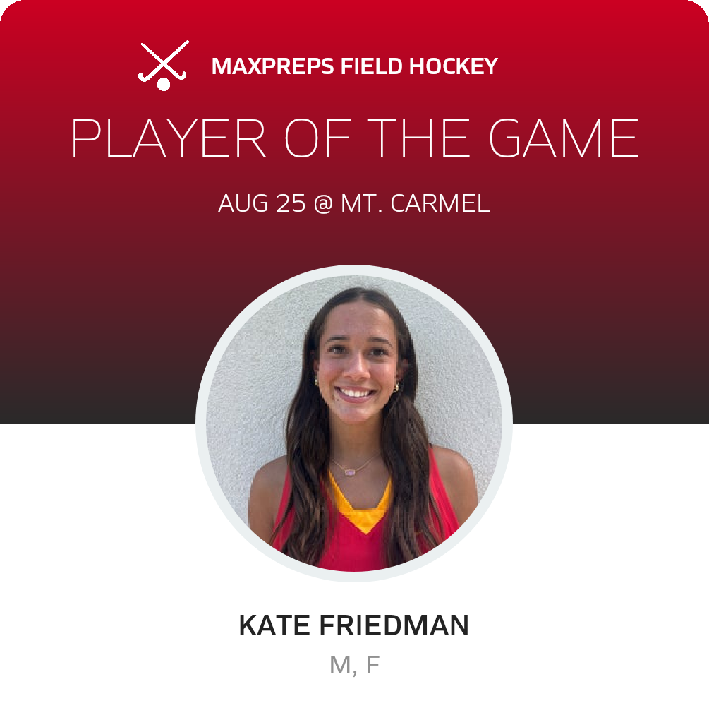 Congratulations to #15 Kate Friedman for being selected the Cathedral Catholic Field Hockey Player of the Game.