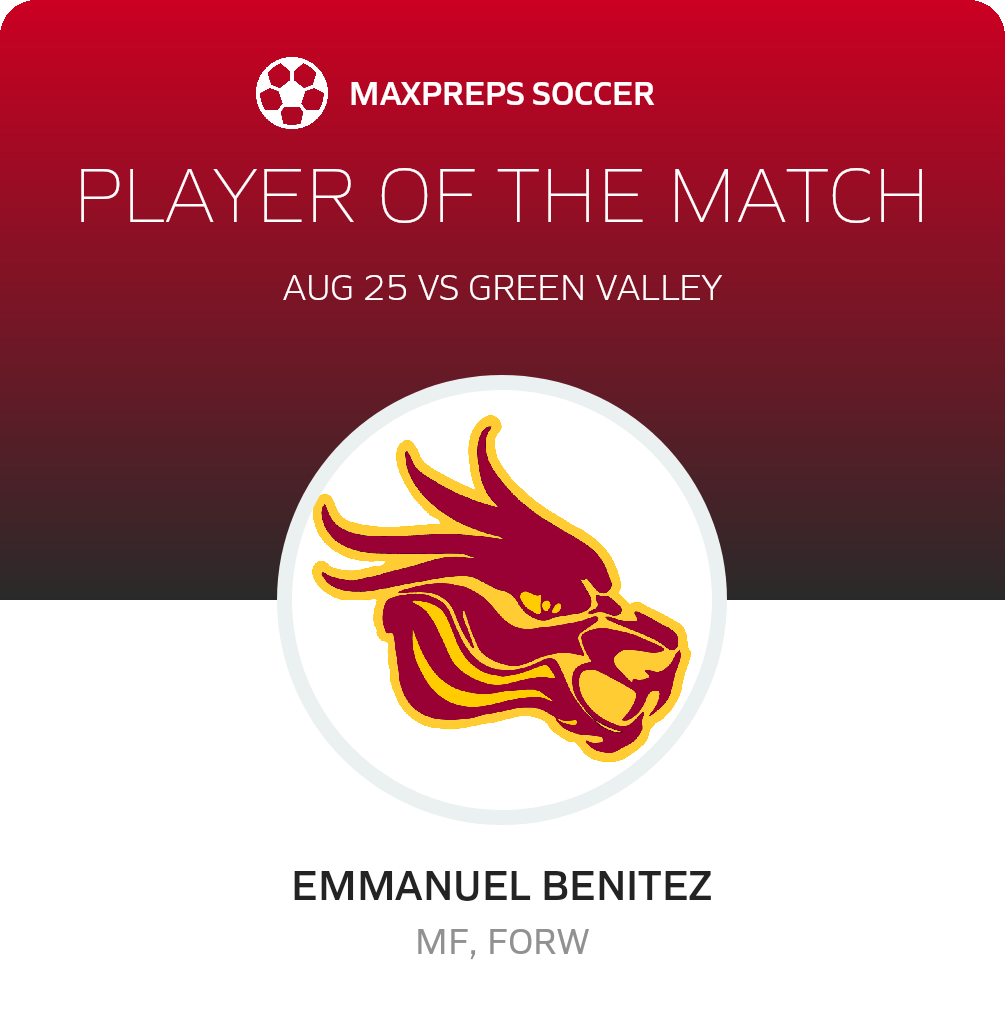 Congratulations to #7 Emmanuel Benitez for being selected the Del Sol Soccer Player of the Match.