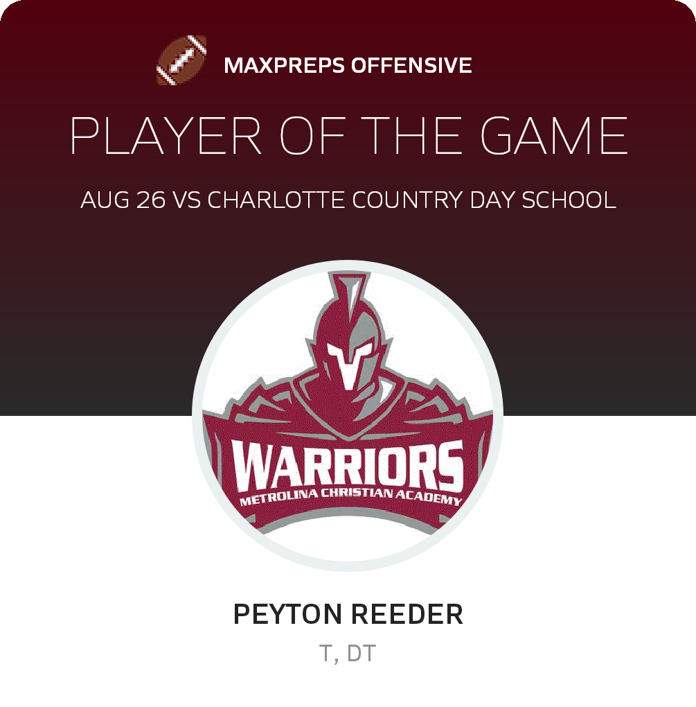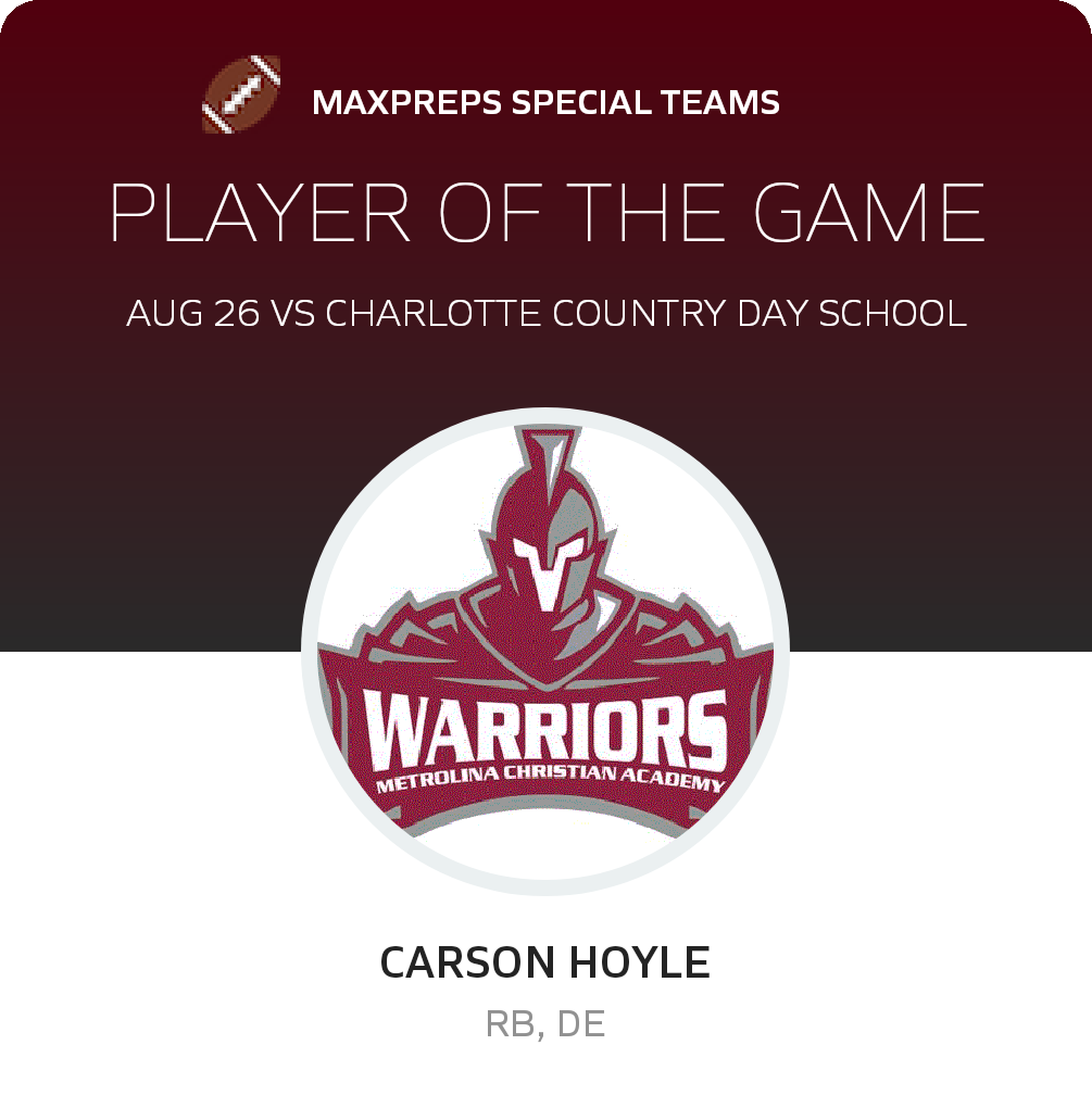 With the win, Metrolina Christian Academy improves its record to 1-1 on the season. The Warriors travel to Charlotte Latin (Charlotte, NC) to confront the Hawks in a non-league test on Friday, September 2. The Hawks go into the test with a record of 1-0. Charlotte Latin won 10-6 in their recent non-league test against Christ School (Arden, NC)
