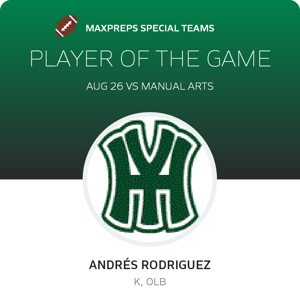 August 26, 2022: Los Angeles, CA 90034 The Hamilton Yankees football squad scored 25 points and limited the visiting Manual Arts Toilers to 24 in the Yankees non-league win on Friday.