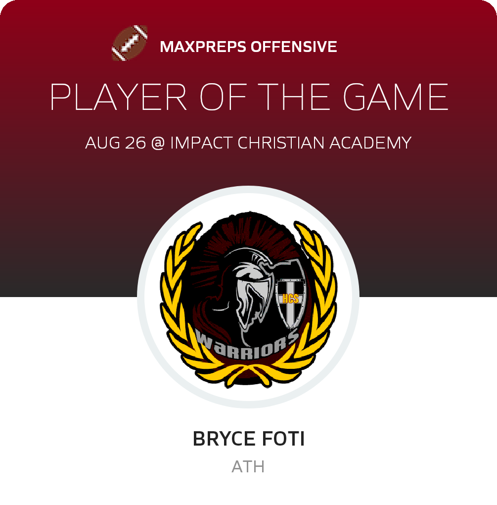With the triumph, Harvest Community improves its record to 1-0 on the campaign. The Warriors travel to Eagle's View (Jacksonville, FL) to confront the Warriors in a non-league test on Friday, September 2. The Warriors come into the test with a record of 0-1. Eagle's View lost 31-8 in their recent non-league test against Branford (Branford, FL)