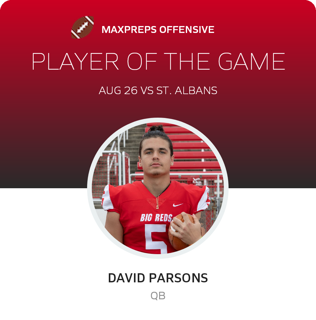 August 26, 2022: Parkersburg, WV 26101 The Parkersburg Big Reds (Parkersburg, WV) football routed the visiting St. Albans Red Dragons (St. Albans, WV), 52-0 in Friday's league bout.