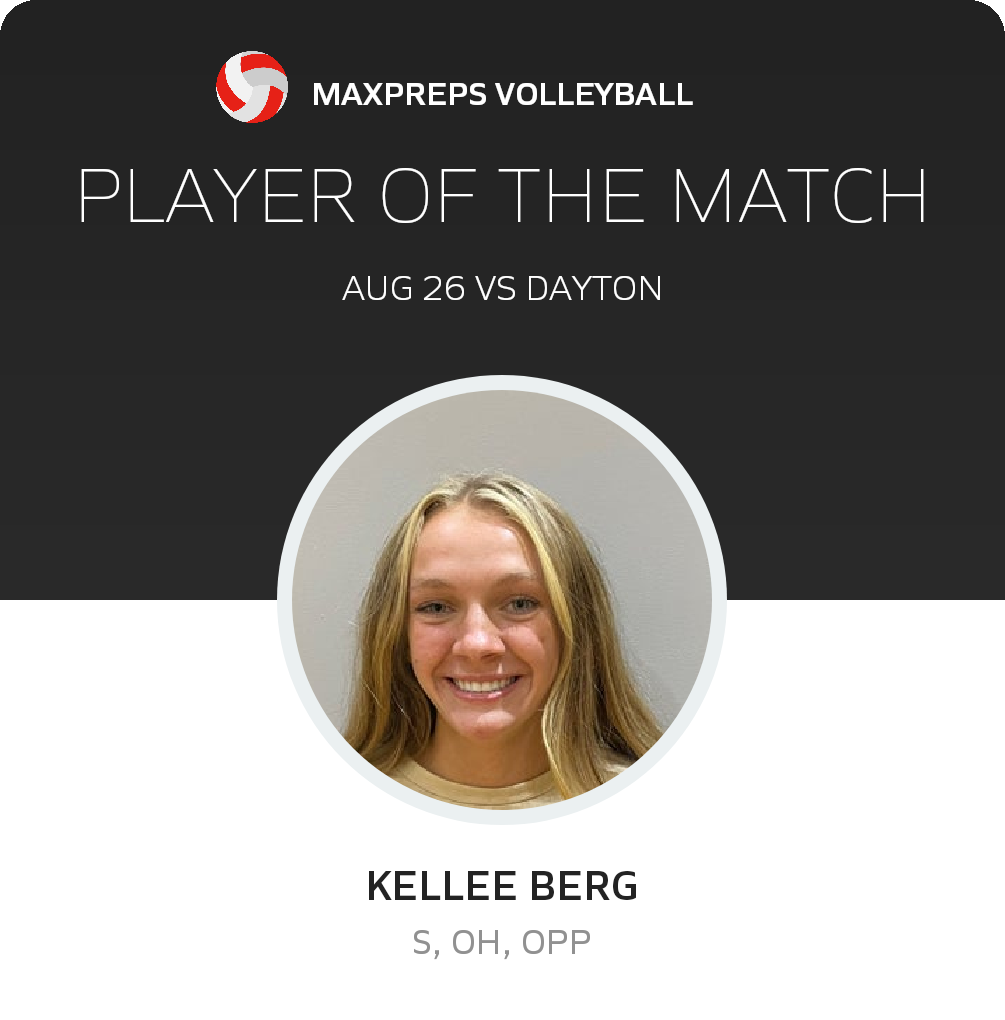 Congratulations to #17 Kellee Berg for being selected the Round Mountain Volleyball Player of the Match.