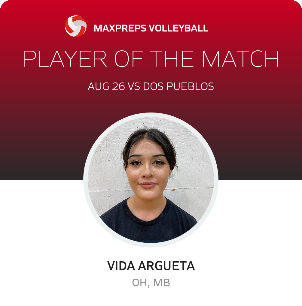 Congratulations to #6 Vida Argueta for being selected the Santa Paula JV Volleyball Player of the Match.