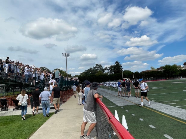 August 27, 2022: Chicago, IL 60655 The crowd at Saturday's non-league contest between the Glenbard West Hilltoppers (Glen Ellyn, IL) and the host Marist RedHawks (Chicago, IL), observed Glenbard West's football squad edge Marist by a count of 33-31.