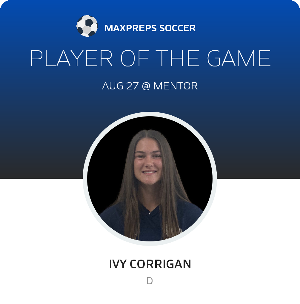 Congratulations to #30 Ivy Corrigan for being selected the Olmsted Falls Girls Soccer Player of the Match.