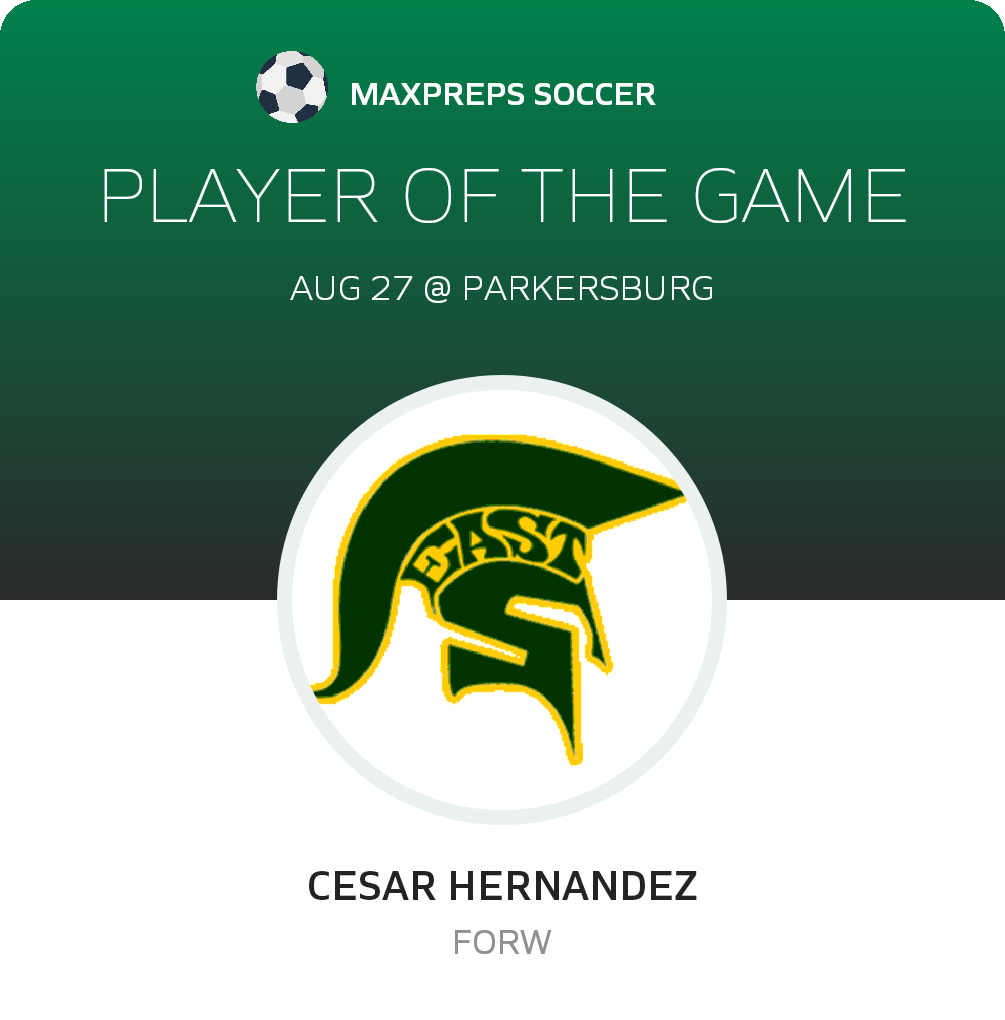 Congratulations to #27 Cesar Hernandez for being selected the Greenbrier East JV Soccer Player of the Match.