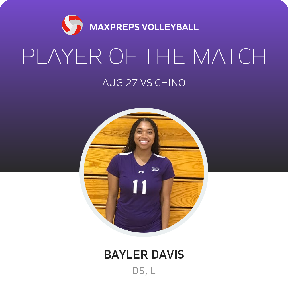 Congratulations to #11 Bayler Davis for being selected the Diamond Bar Volleyball Player of the Match.