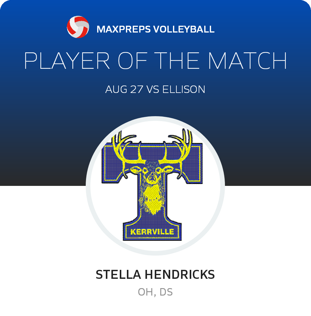 Congratulations to #10 Stella Hendricks for being selected the Tivy Volleyball Player of the Match.