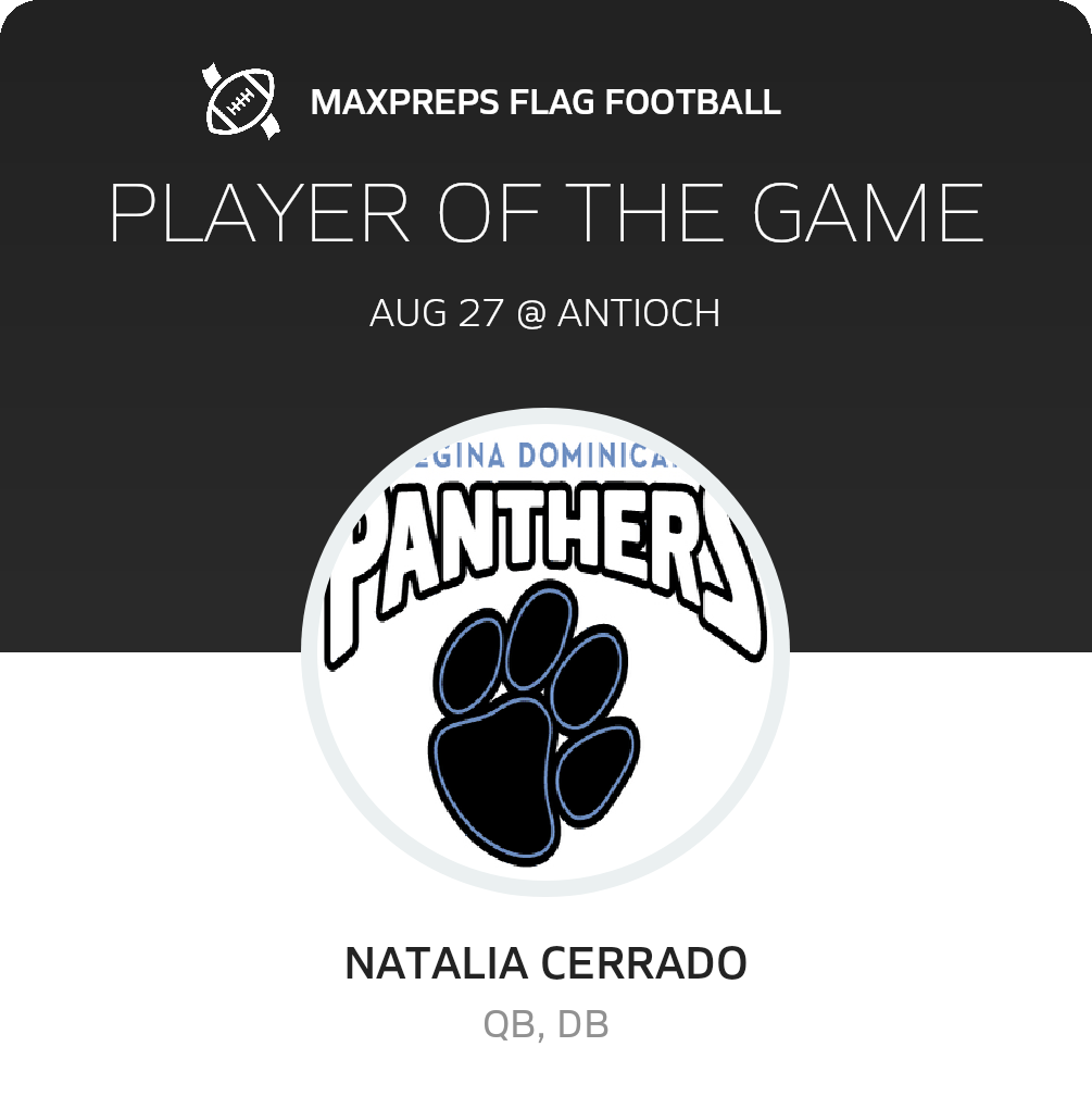 August 27, 2025: Antioch, IL 60002 The Antioch Sequoits flag football squad scored 54 points and limited the visiting Regina Dominican Panthers to 12 in the Sequoits non-league triumph on Wednesday.