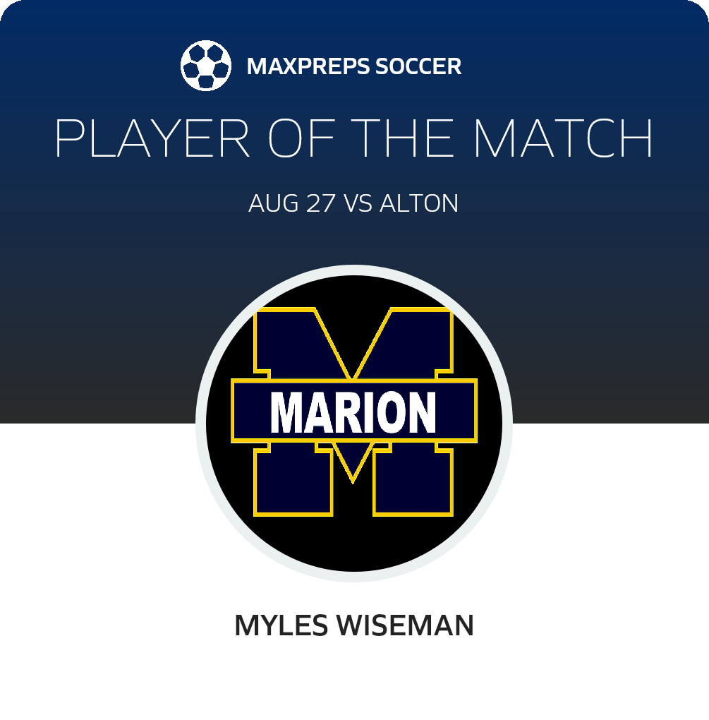 Congratulations to #16 Myles Wiseman for being selected the Marion Soccer Player of the Match.
