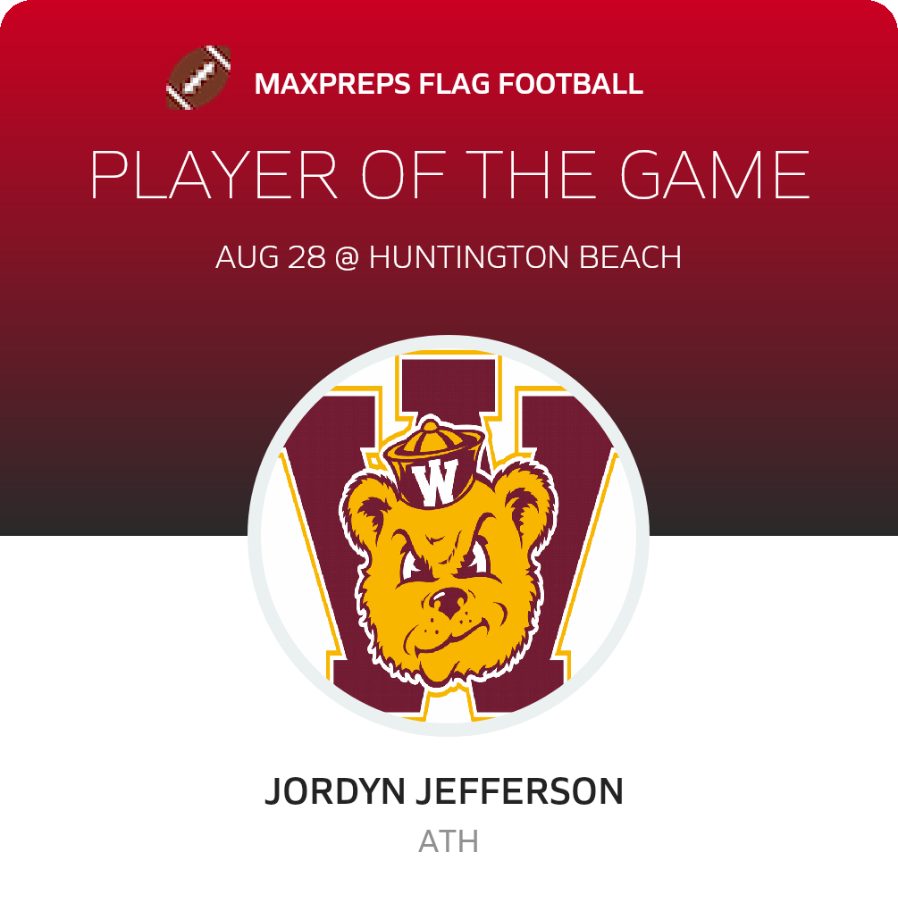 Congratulations to #5 Jaiden Anderson for being selected the Huntington Beach Girls Flag Football Player of the Game.