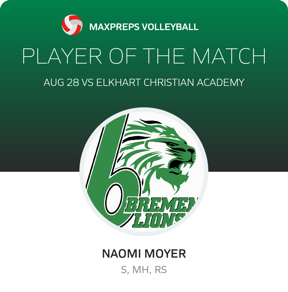 August 28, 2023: Bremen, IN 46506 The Elkhart Christian Academy Eagles volleyball team scored 3 points and limited the host Bremen Lions to 0 in the Eagles non-league victory on Monday.