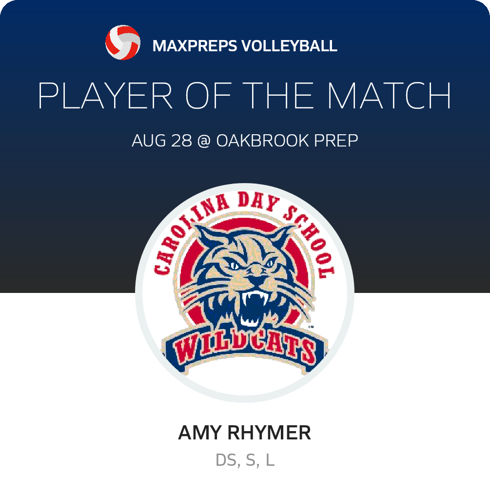 Congratulations to #23 Amy Rhymer for being selected the Carolina Day Volleyball Player of the Match.