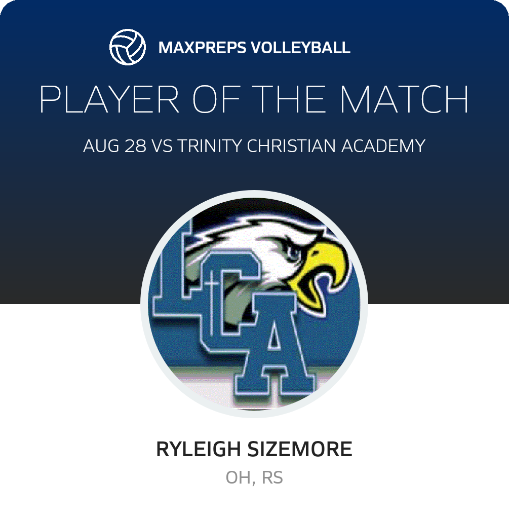 Congratulations to #10 Ryleigh Sizemore for being selected the Lexington Christian JV Volleyball Player of the Match.
