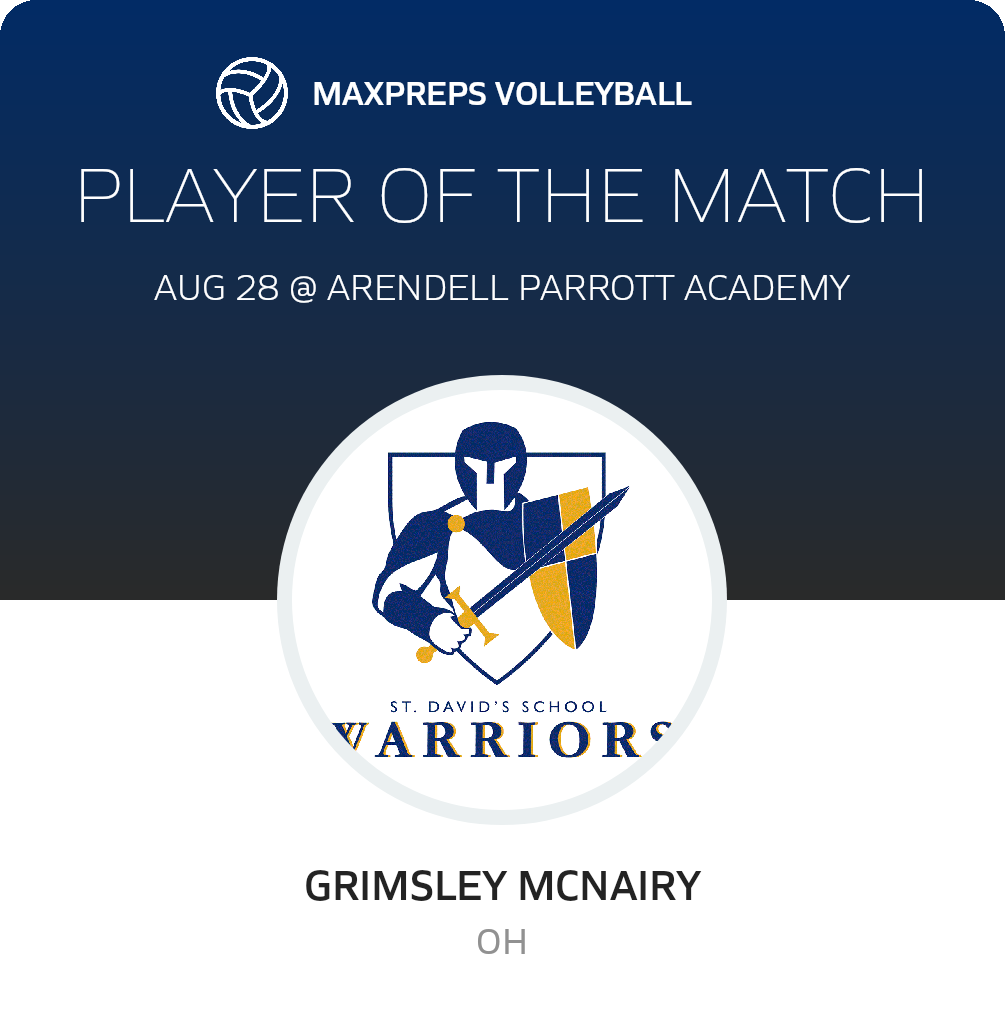 August 28, 2025: Kinston, NC 28504 The Arendell Parrott Academy Patriots volleyball team scored 3 points and restricted the visiting St. David's Warriors to 0 in the Patriots non-league triumph on Thursday.