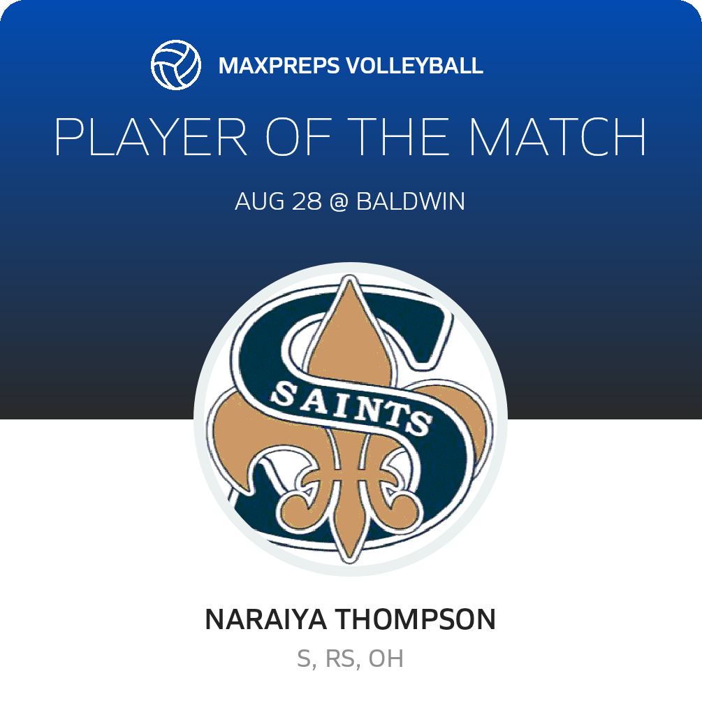 August 28, 2025: Baldwin, FL 32234 The Baldwin Indians (Baldwin, FL) volleyball knocked off the visiting Sandalwood Saints (Jacksonville, FL), 3-1 in Thursday's non-league bout.
