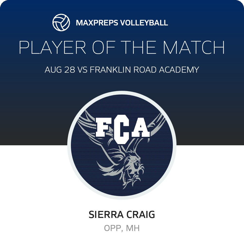 August 28, 2025: Franklin, TN 37064 In Thursday's league challenge, the visiting Franklin Road Academy Panthers volleyball squad scored a 3-0 win over the Franklin Christian Academy Falcons.
