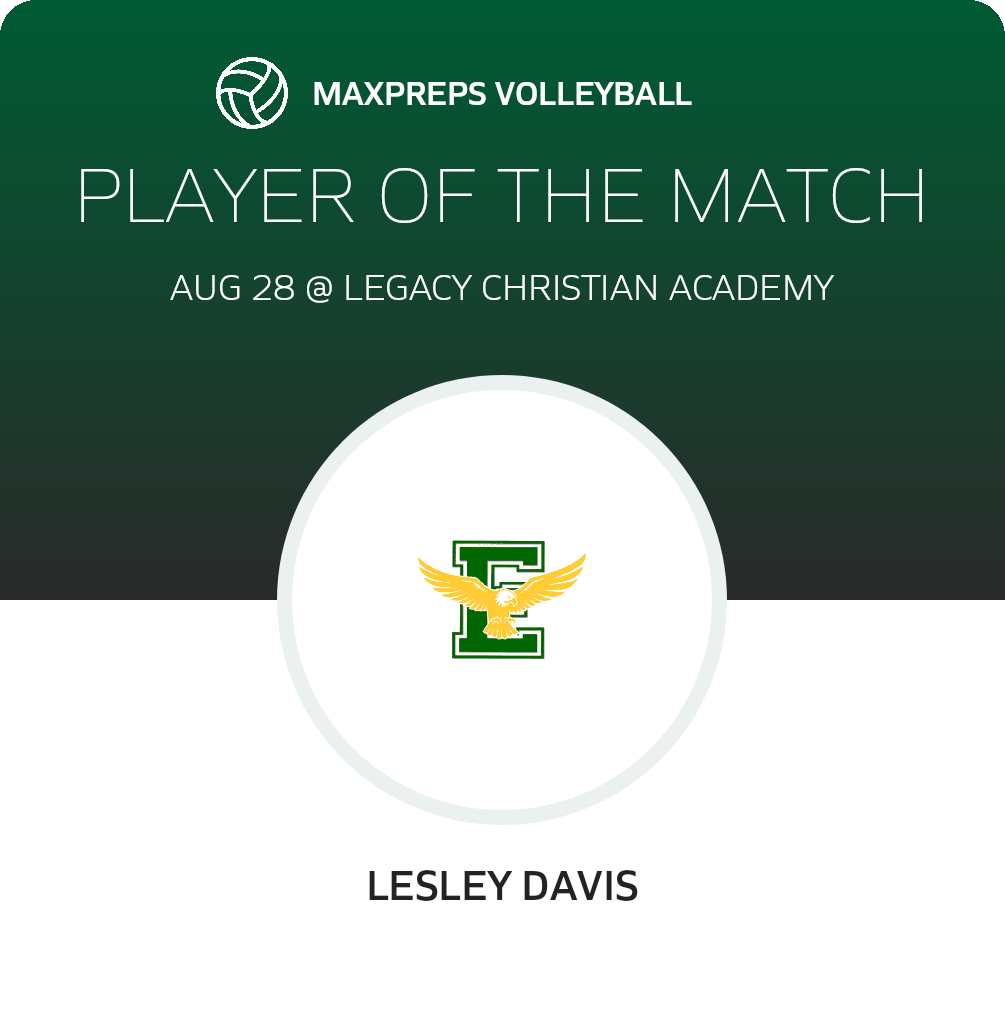 The Legacy Christian Academy (Beaumont, TX) varsity volleyball team won Thursday's home non-conference match against The Ehrhart School (Beaumont, TX) by a score of 3-0.