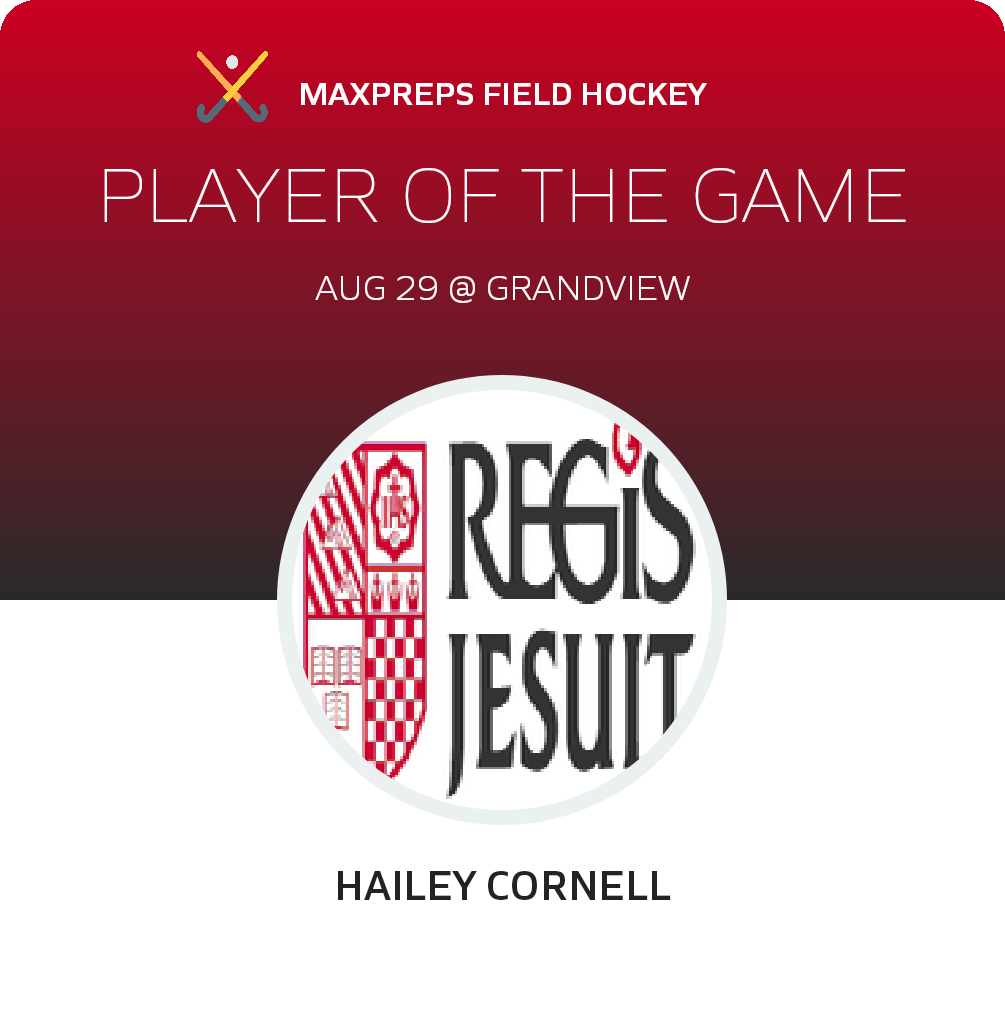 Congratulations to #22 Hailey Cornell for being selected the Regis Jesuit Field Hockey Player of the Game.