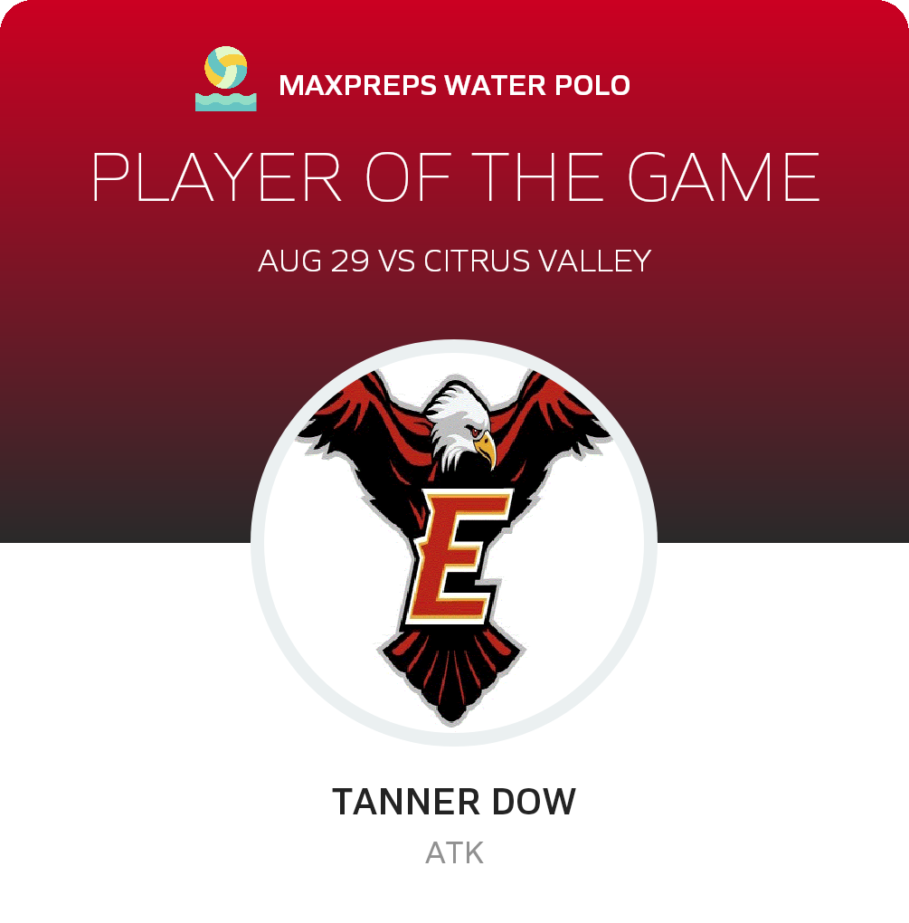 Congratulations to #12 Tanner Dow for being selected the Etiwanda Water Polo Player of the Game.