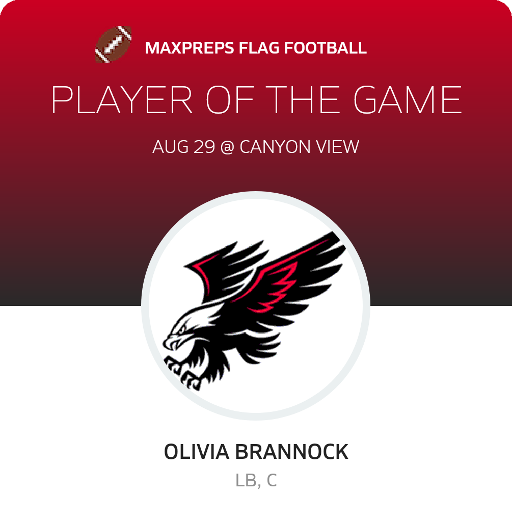 Congratulations to #4 Aaliya Oliver for being selected the Canyon View Girls Flag Football Player of the Game.