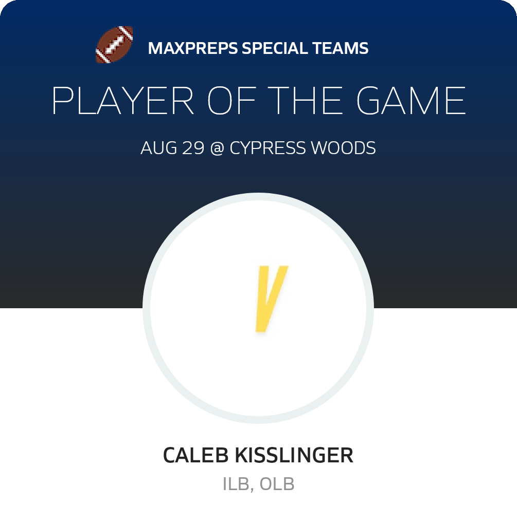 Congratulations to #51 Andries Driyer (overall), #9 Xavier Haynes (offensive), #11 Corey Sanders (defensive) and #46 Caleb Kisslinger (special teams) for being selected the Katy Taylor JV Football Players of the Game.