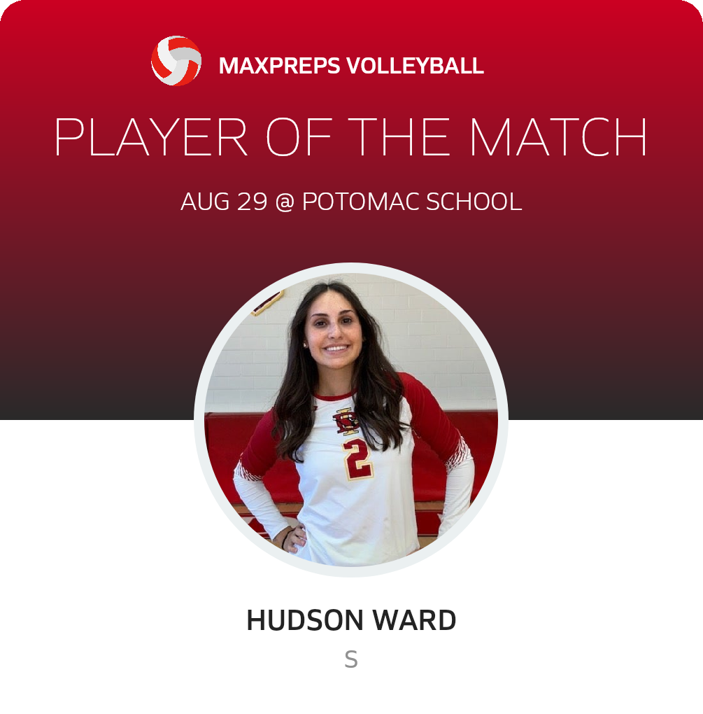 Congratulations to #2 Hudson Ward for being selected the Bishop Ireton Volleyball Player of the Match.